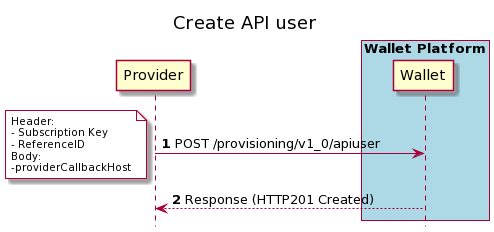 The Provider sends a POST {baseURL}/apiuser request to Wallet platform.